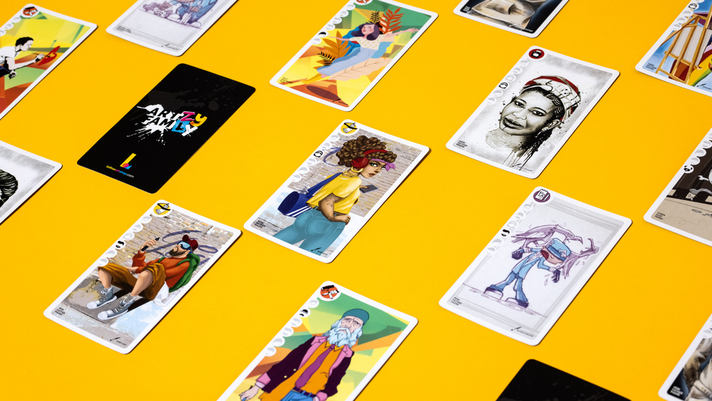 ART•ZY FAM•LY consists of 42 cards divided into 7 families of 6. To distinguish them, each family has its own artistic style (for example, retro or tattoo) and its iconography.